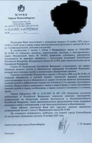 Вчера благодаря публикациям некоторых СМИ начал расти телеграм-канал, в котором утверждалось, что 19 ноября состоится согласованный митинг родственников мобилизованных не менее чем на 300 участников. На канал стали подписываться жены мобилизованных из разных городов Сибири, которые собирались ехать на митинг из соседних регионов.