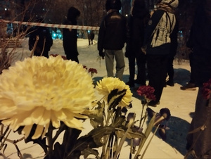 Памятник политрепрессированным в Нарымском сквере полиция оцепила ленточкой - мол, сообщение о минировании. Люди оставляют цветы по периметру оцепления (с) https://t.me/sveta_kaverzina/7349