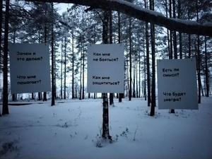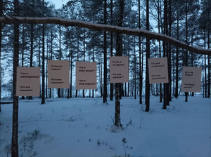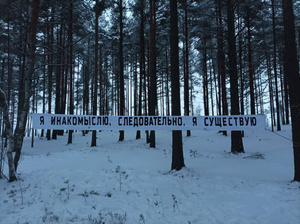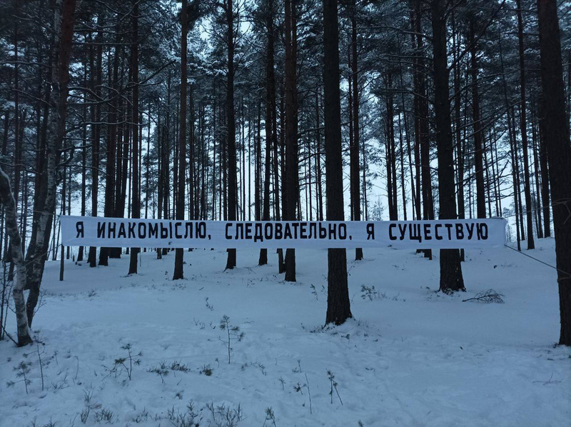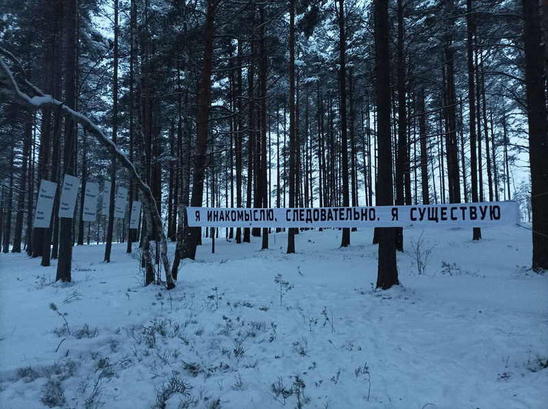В лесу под Петербургом повесили плакат «Я инакомыслю, следовательно, я существую», посвященный Дню прав человека