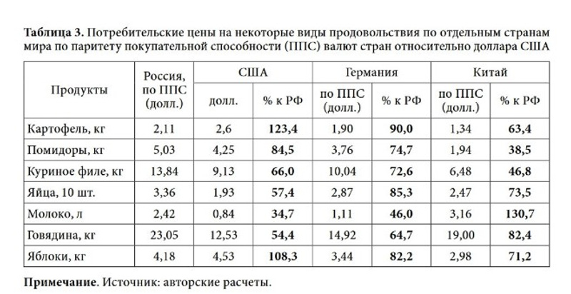 А использовать курс ППС в 30 рублей (полученный для ВВП) и по нему сравнивать стоимость продуктовых товаров - это нонсенс. Но почему то делают именно так.