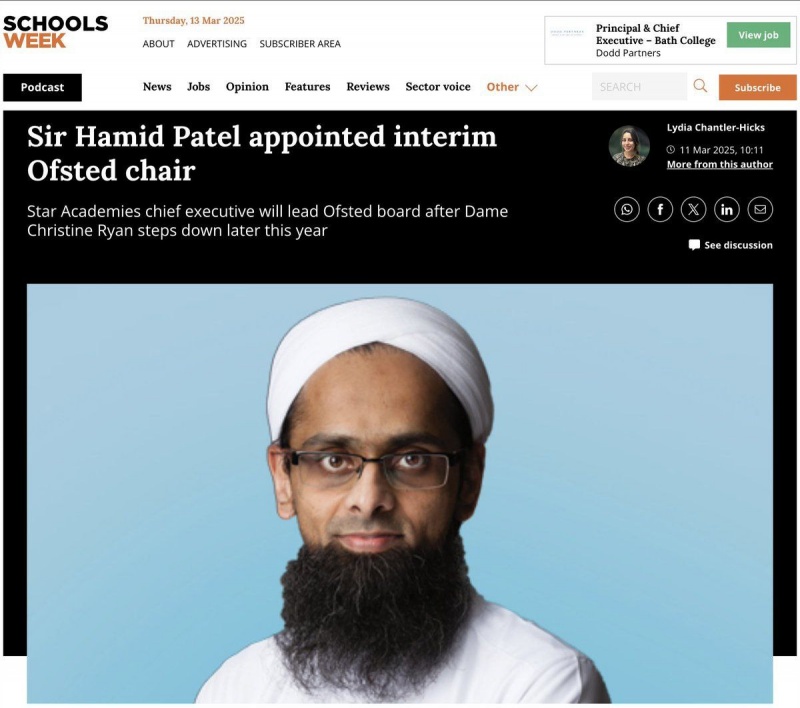 Управление по стандартам в образовании Великобритании впервые возглавил истинный мусульманин. Он будет инспектировать школы и учебные заведения в Англии, чтобы убедиться, что они «продвигают британские ценности».