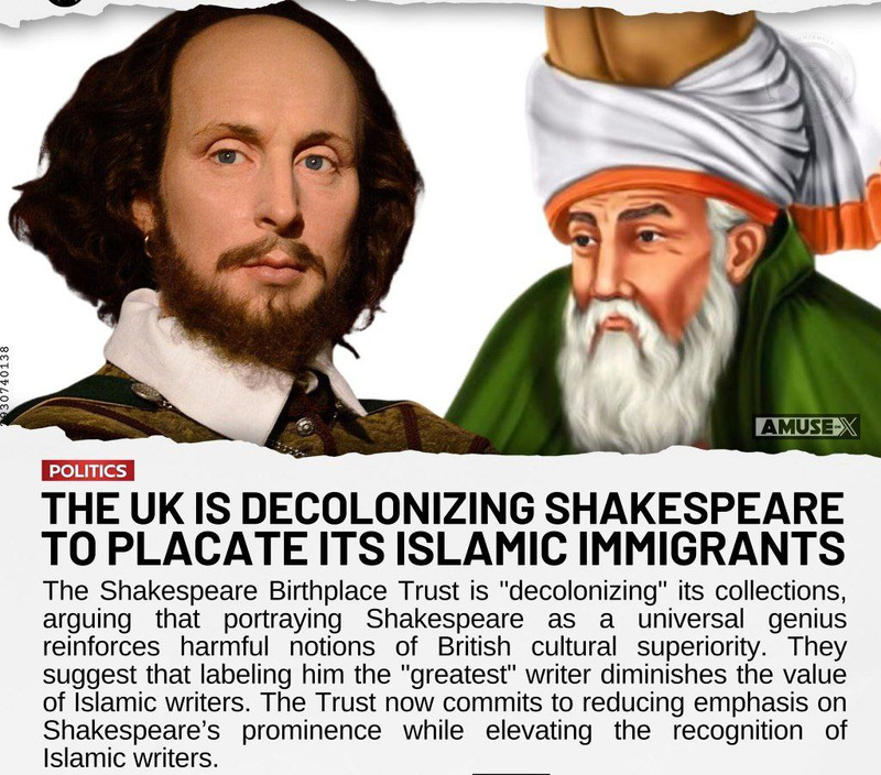 В Британии приносят в жертву Шекспира своей растущей исламской общине. Британские школы сокращают изучение Шекспира и заменяют его исламскими авторами, такими как Джалалуддин Руми.